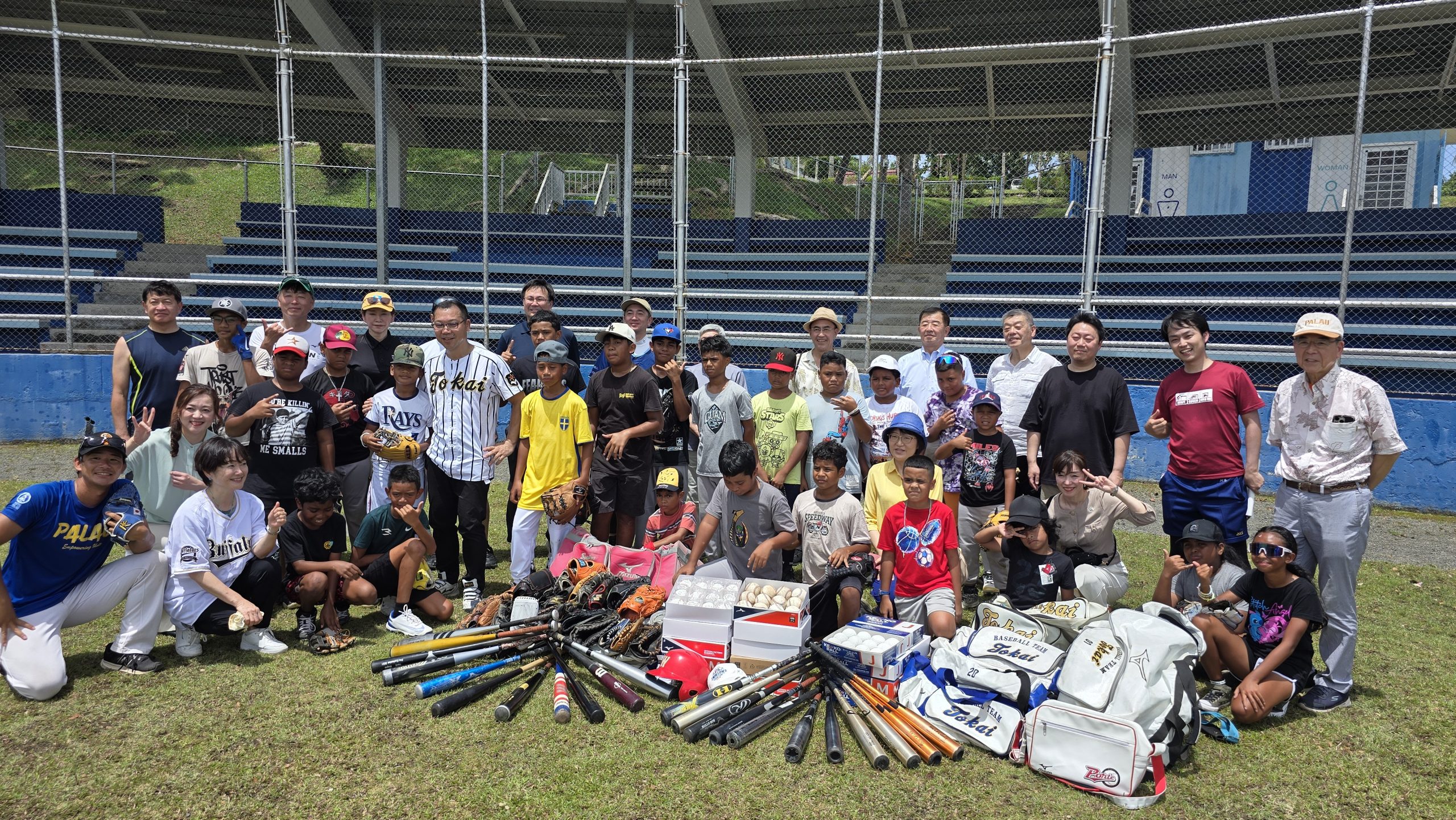 Atley Kazuma of the Palau Baseball Federation accepted the donations on behalf of the Palau Youth Baseball League. The equipment included bats, gloves, balls and bags, all aimed at strengthening local baseball programs.